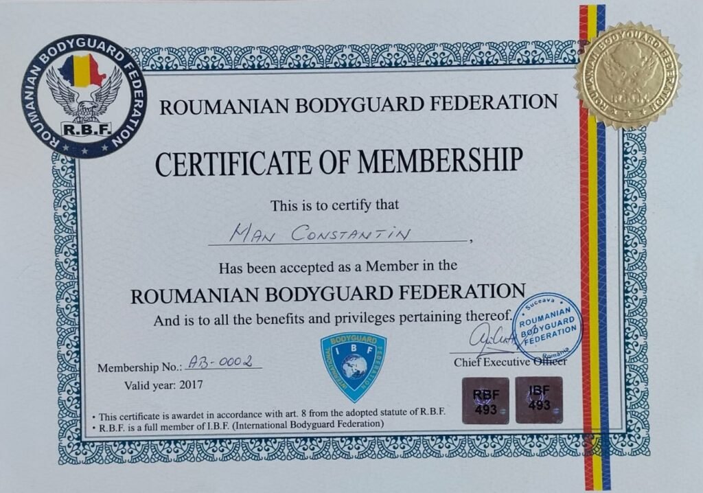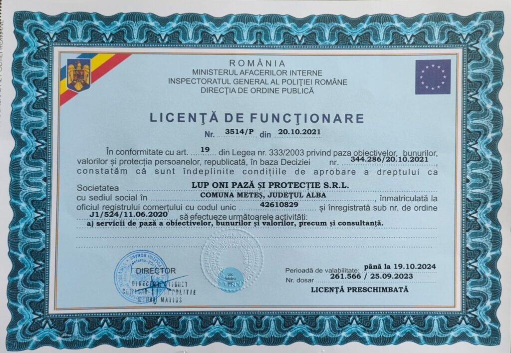 Intregul personal calificat este atestat de organele de politie, conform Legii 333/2003 si Legea 4/2008.
